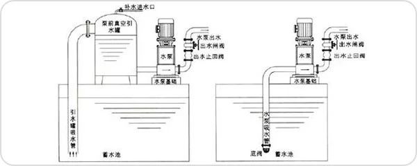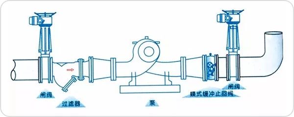 另一種是安裝在水泵的后方。這種安裝方法是液面高于水泵的情況下,方便啟停水泵時不用關(guān)水泵出水閥,特別是對于母管制水泵系統(tǒng),防止發(fā)生倒流的情況。